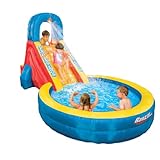 I was looking for a pool that would be perfect for my son and neices who range in age from 16months to 4 years. I purchased the Banzai Blast Water Park first and was very disapointed. I decided to give this brand another go, only this time get one that was MUCH bigger. To see this pool in video form, you can see it in action on the web, look for it, it will make you want to get one. It was very easy & very quick to set up, an inflate. It is a perfect size for a toddler or preschooler, easy to climb slide, and big enough pool without being to deep. Four kids can have a blast in this pool. Also, easy and quick to put away too. One little thing I don't like, the water spray was pretty harsh on them, they prefer it without that part turned on. Great purchase, a little hint though, you can get it for almost a hundred dollars cheaper elsewhere.