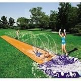 For a solid slip and slide that will last (with care) many years, has padding and an actual pool at the end, try the Aviva Wild Water Slide.It will be safer, more comfortable, and last more than a single summer.